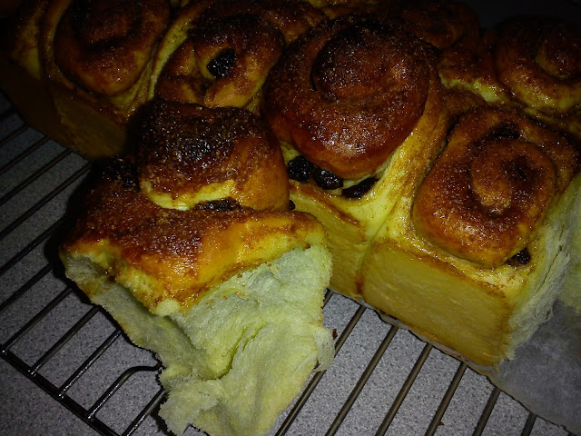 First time, baking cinnamon rolls with pandan flavour. Not a bad idea to try, after all pandan flavour can blend with cinnamon too.